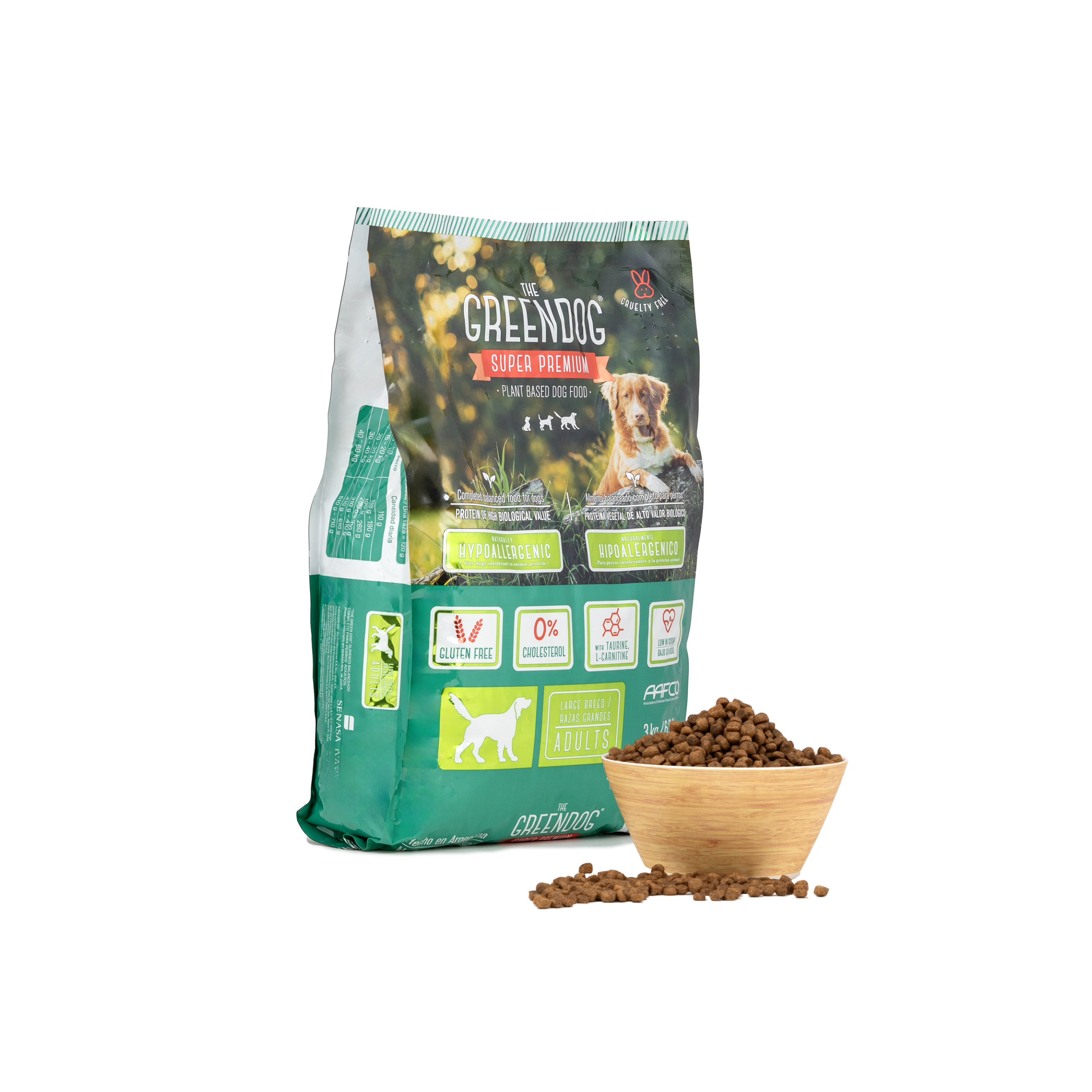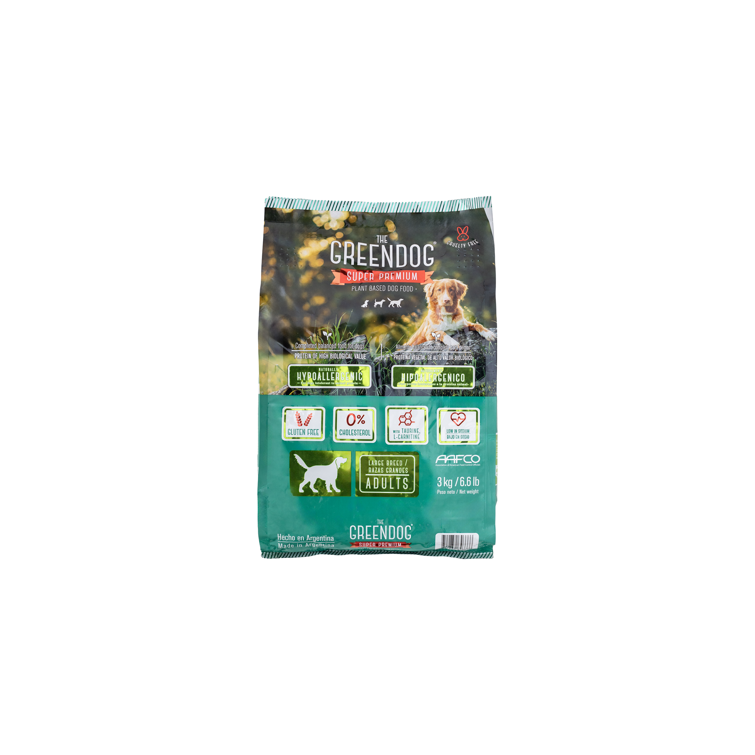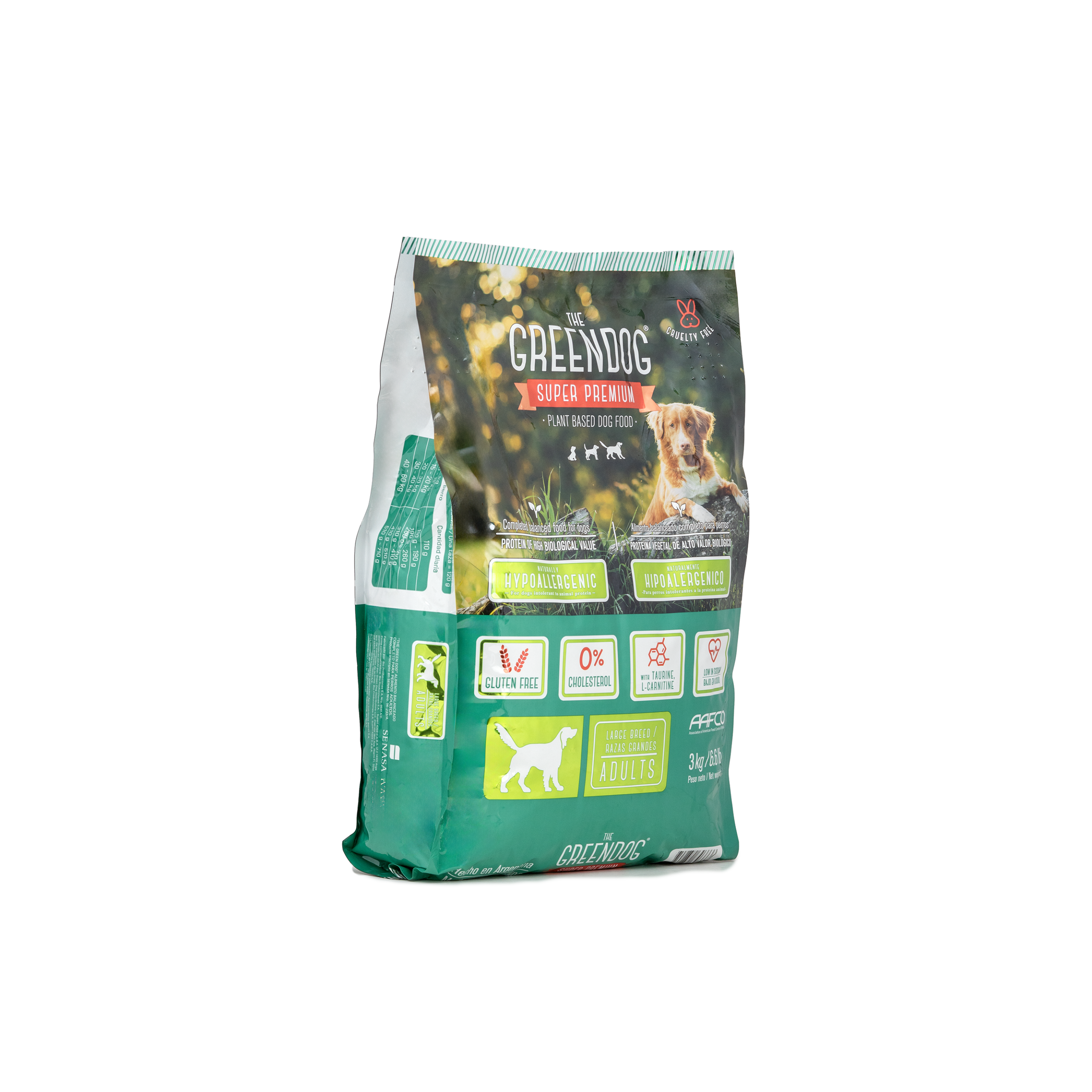 You will be surprised to see how much your dog will enjoy Green Dog and in a few weeks, you will see great results in its overall well-being. Green Dog contains ingredients that guarantee a complete and balanced nutrition for adults dogs (1 year and older). Excellent balance of high biological value protein content that helps reach optimal maintenance. Fatty acids like omega 3 and 6 to contribute to a silky, shiny hair and skin as well as general good health. Vitamin E and minerals like selenum. Contains beet pulp to promote digestive health, maintaining normal gastrointestinal function. Cholesterol free. Balance of calcium and phosphorus contributes to strong and healthy bones. Green Dog is formulated with health consious ingredients: all raw materials of plant based origin come from the region where the proccessing plant is loated. From the garden to the factory in a short period of time. Green Dog provides great benefits such as: naturally hypoallergenic (control of allergies), low in sodium (improves cardiac health), gluten free, improves digestive health, strengthens the immune system, bones and musles; helps control weight, improves fur coat, reduces stool odor, reduces visits to vet, improves energy and vitality and more!