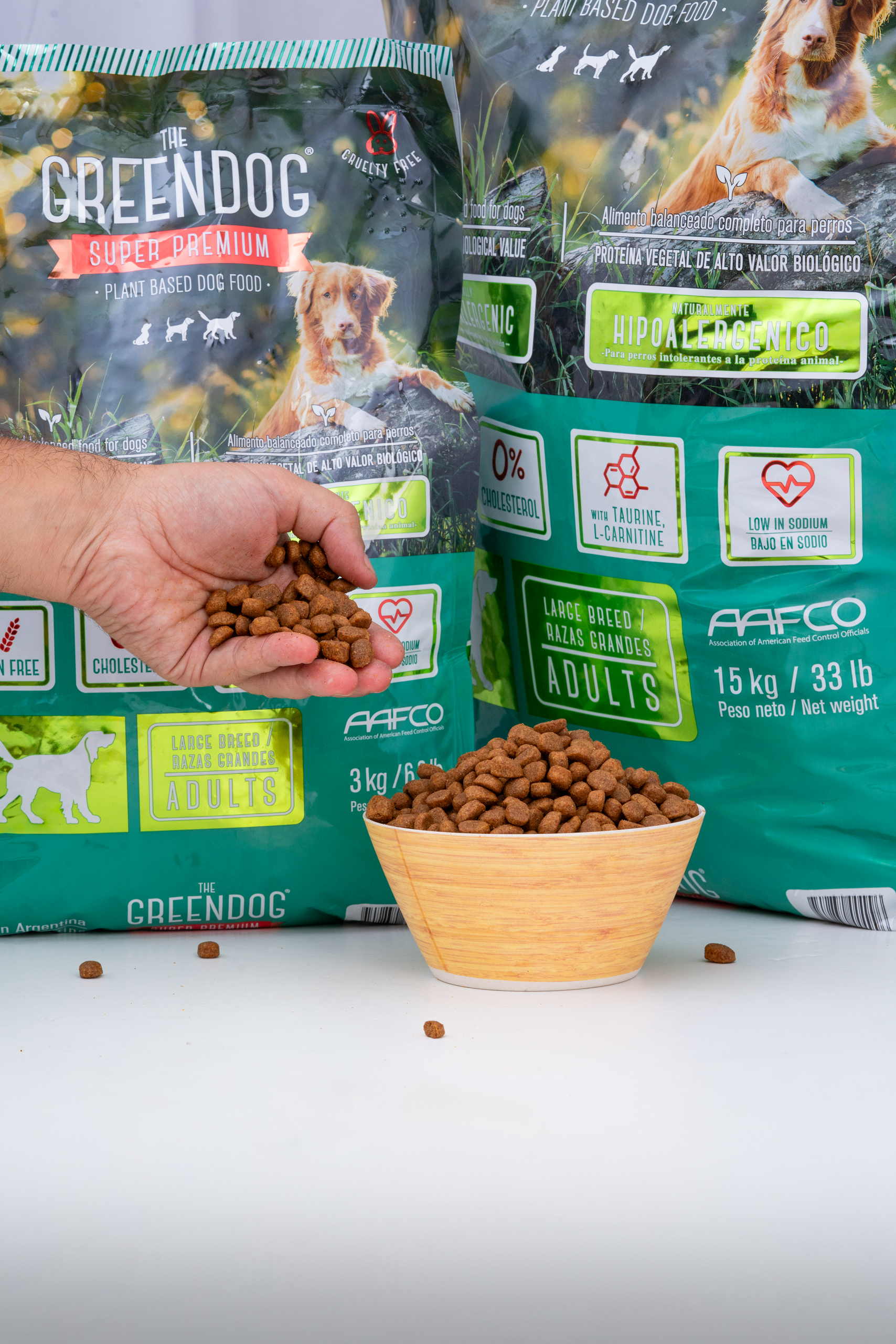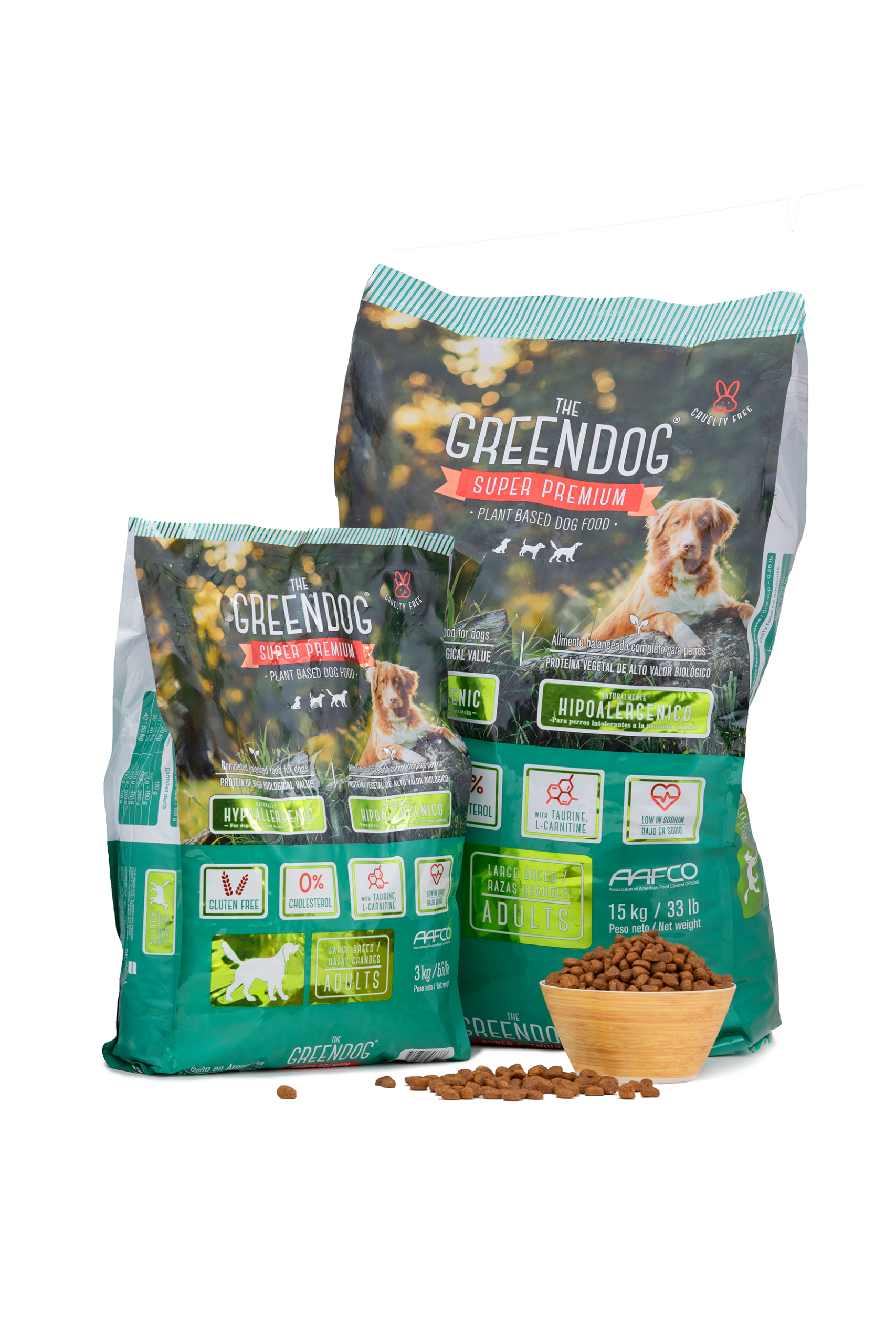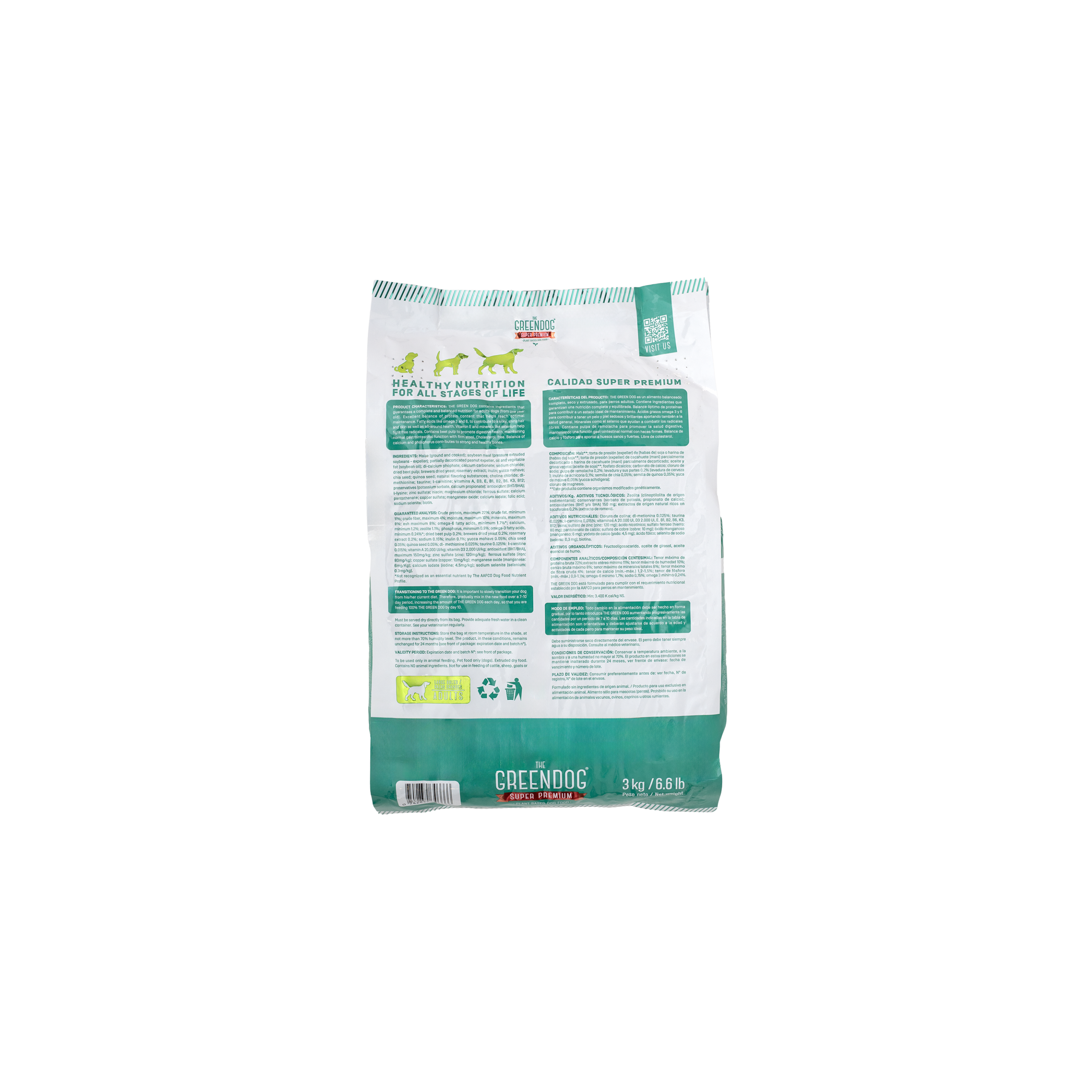 You will be surprised to see how much your dog will enjoy Green Dog and in a few weeks, you will see great results in its overall well-being. Green Dog contains ingredients that guarantee a complete and balanced nutrition for adults dogs (1 year and older). Excellent balance of high biological value protein content that helps reach optimal maintenance. Fatty acids like omega 3 and 6 to contribute to a silky, shiny hair and skin as well as general good health. Vitamin E and minerals like selenum. Contains beet pulp to promote digestive health, maintaining normal gastrointestinal function. Cholesterol free. Balance of calcium and phosphorus contributes to strong and healthy bones. Green Dog is formulated with health consious ingredients: all raw materials of plant based origin come from the region where the proccessing plant is loated. From the garden to the factory in a short period of time. Green Dog provides great benefits such as: naturally hypoallergenic (control of allergies), low in sodium (improves cardiac health), gluten free, improves digestive health, strengthens the immune system, bones and musles; helps control weight, improves fur coat, reduces stool odor, reduces visits to vet, improves energy and vitality and more!